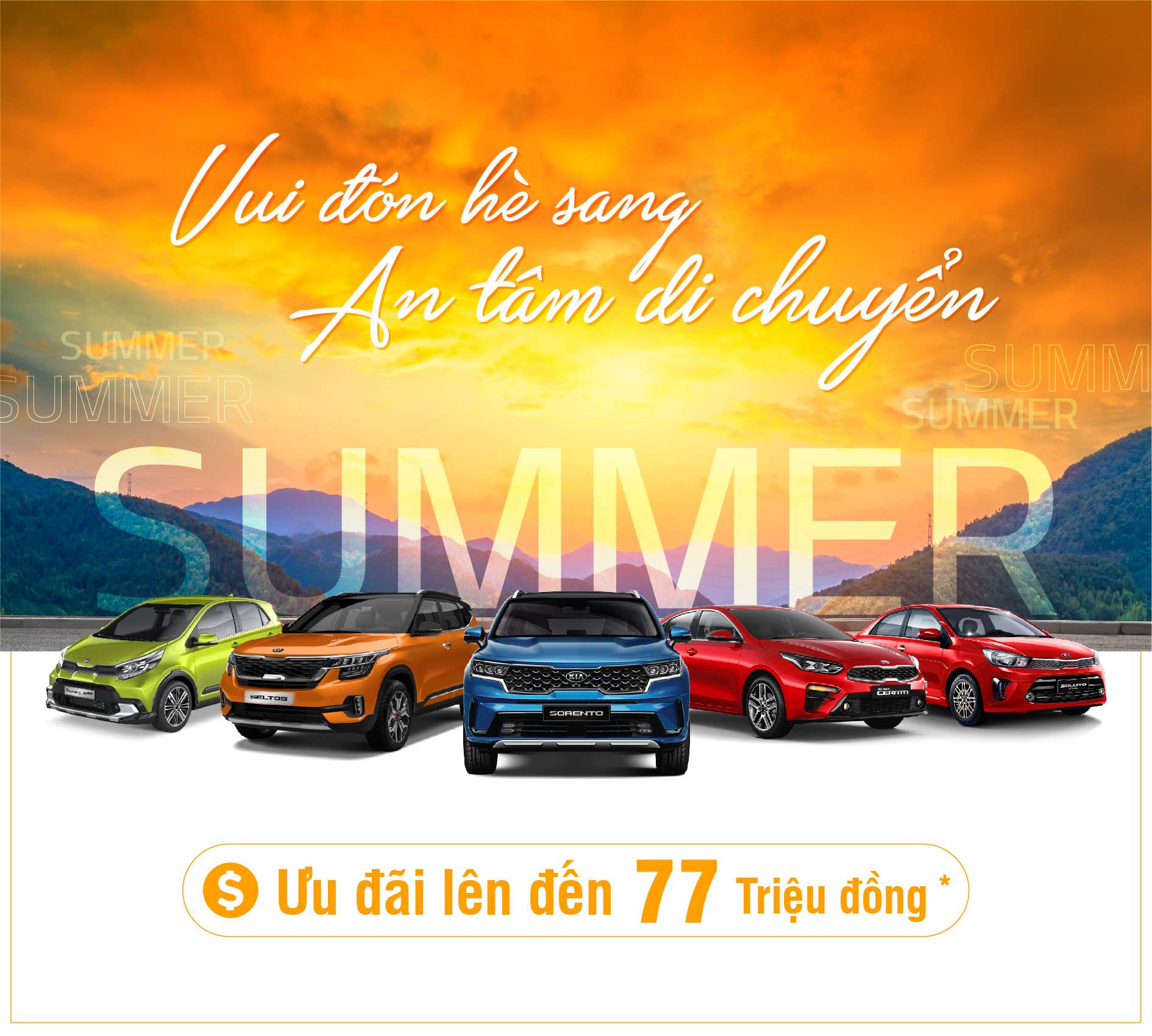 Từ 11/9/2023, Kia áp dụng giá mới với mức điều chỉnh lên đến 75 triệu đồng cho các dòng xe tương đương 50% lệ phí trước bạ. Theo đó, cùng với chính sách giảm 50% trước bạ từ chính phủ và chương trình ưu đãi mới của Kia Việt Nam, khách hàng có cơ hội tốt nhất trong năm để sở hữu các dòng xe Kia thế hệ mới với ưu đãi tương đương 100% lệ phí trước bạ.